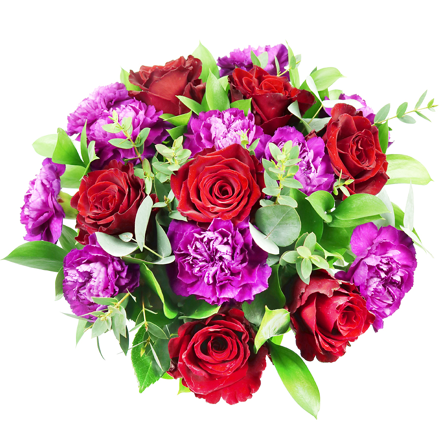 An exquisite combination of red roses, cerise carnations, ruscus and eucalyptus that will for sure surprise your soulmate. When love is in the air, go for the most romantic gesture to make them feel even more loved!