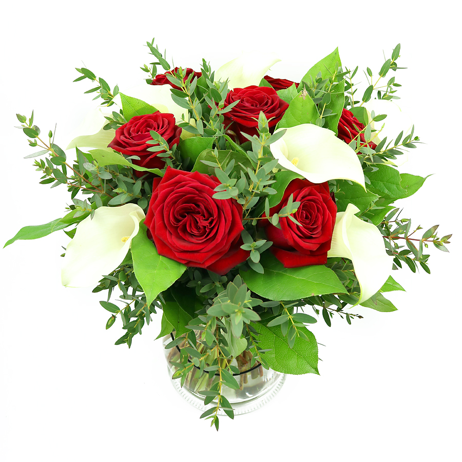 This magical abundance of roses, calla and greenery will bring a smile on everyone's face. If the words can`t be enough to show your love, this dazzling bouquet for sure will say more.