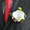 Complete your wedding look with our Orchid & Chrysanthemums Groom Buttonhole, expertly handcrafted by Flower Delivery Queensbury. This elegant buttonhole features a striking white orchid paired with fresh green mini chrysanthemums and delicate gypsophila, all neatly tied with an elegant red ribbon for a refined, modern finish. Designed to complement a wide range of suit styles and colour palettes, it adds a touch of luxury and sophistication to your big day.